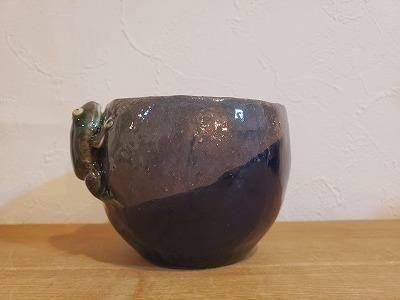 カエルがぴょっこりうつわに乗ることで