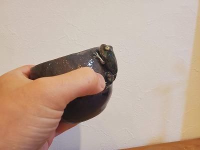 蛙の質感が陶器にピッタリで